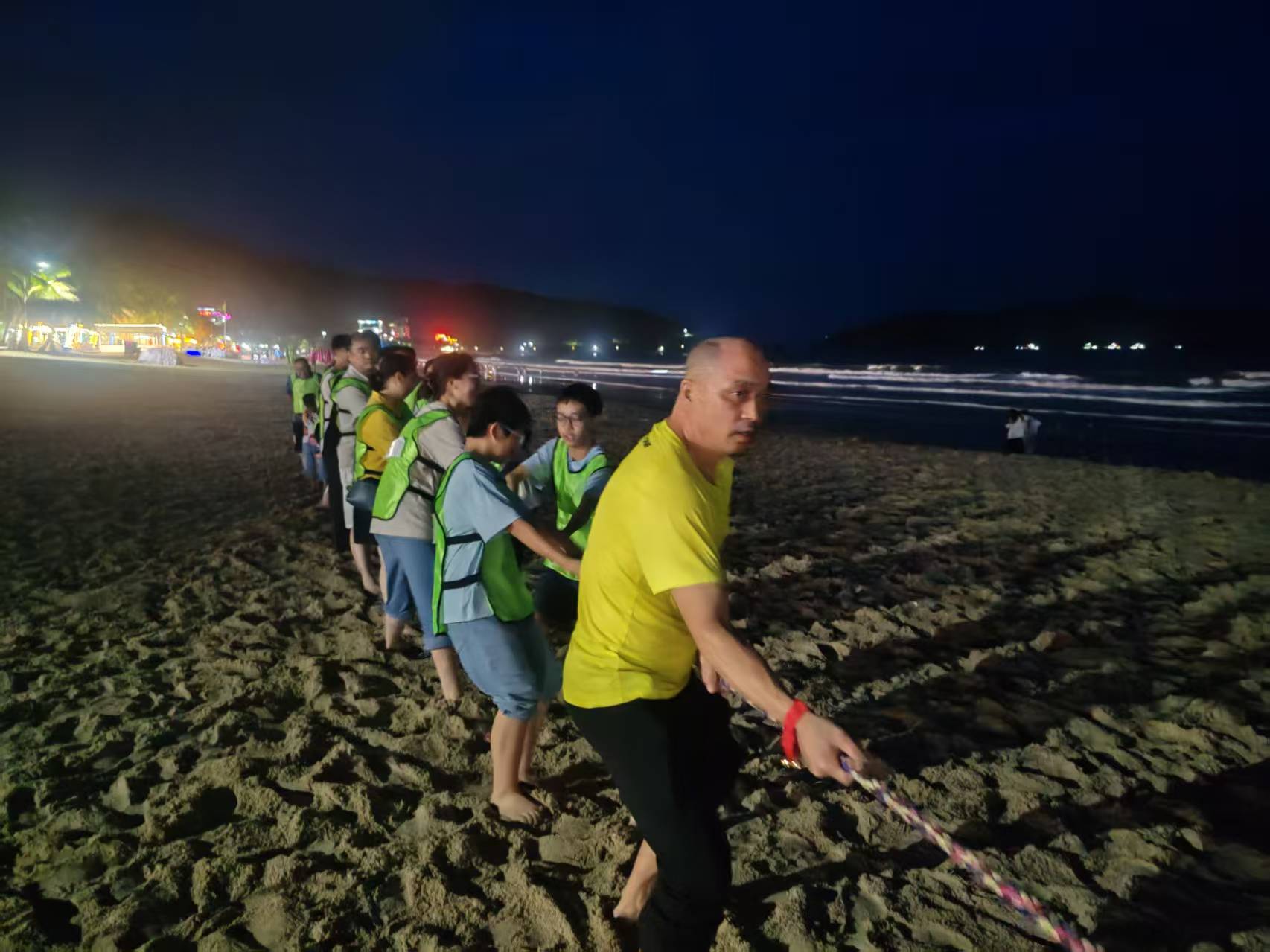 下午乘船前往上川島,入住飛沙灘旅游區(qū)酒店。傍晚的川島沙灘運(yùn)動會將團(tuán)建推向高潮,撕名牌大戰(zhàn)、兩人三足、拔河比賽等趣味活動,讓員工們在歡笑中拉近距離。晚餐的魚蝦蟹海鮮大咖宴更是為第一天畫上圓滿句號。